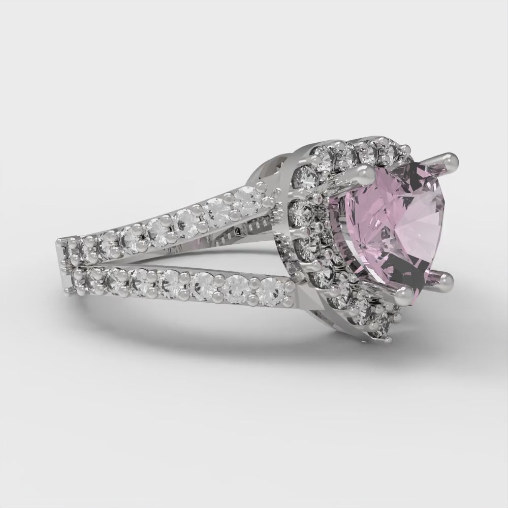 1.49 cttw Zirconia Simulated Pink Diamond Hidden Halo Engagement Ring - Solid Gold (VVS1, Heart Cut,6.5mm)