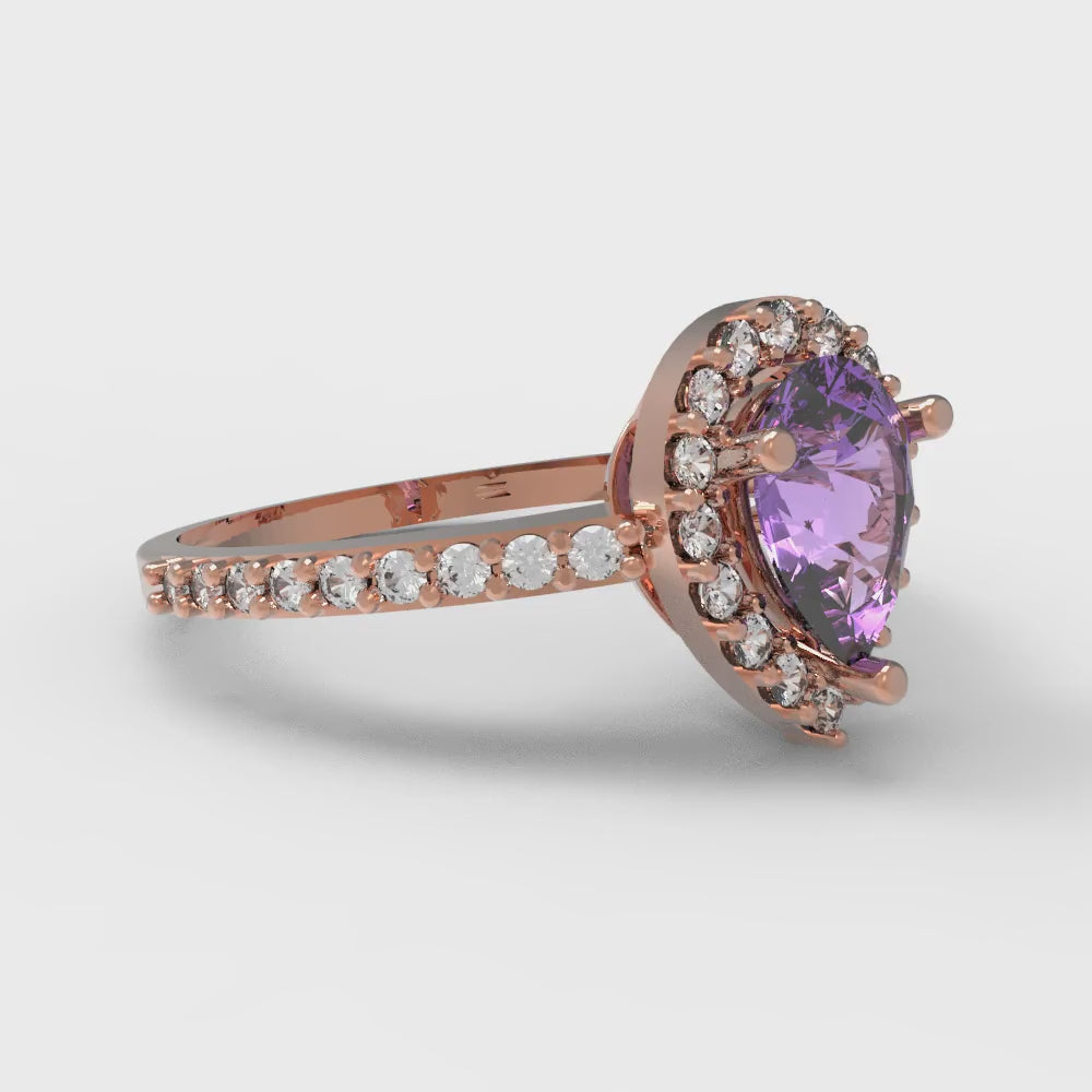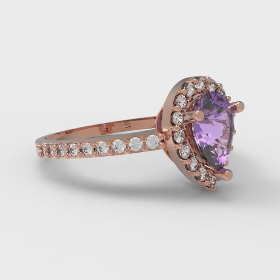 0.755 cttw Simulated Alexandrite Hidden Halo Engagement Ring - Solid Gold (Pear Cut,7x5mm )