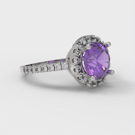 1.8 cttw Simulated Alexandrite Hidden Halo Engagement Ring - Solid Gold (Round Cut,7.5mm)