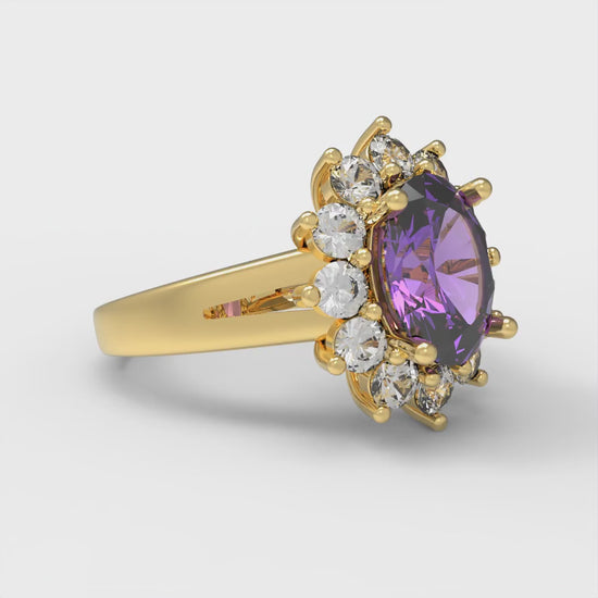 2.72 cttw Simulated Alexandrite Hidden Halo Engagement Ring - Solid Gold (Oval Cut,9x7mm)