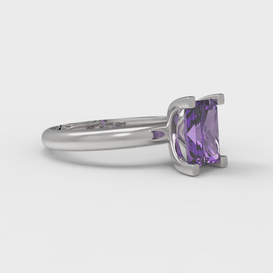1 cttw Simulated Alexandrite Solitaire Engagement Ring - Solid Gold (Emerald Cut,7X5mm)