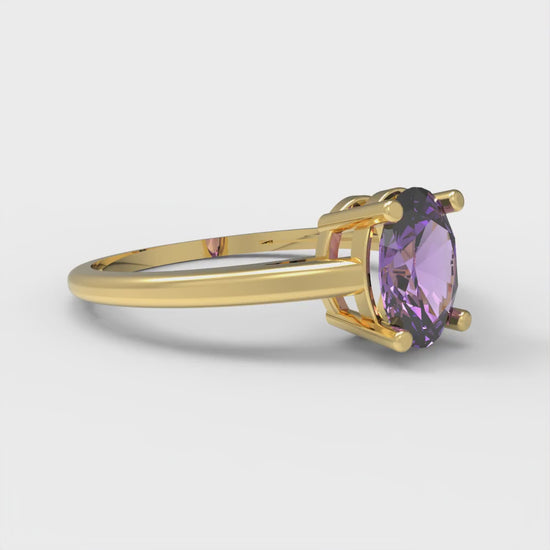 1 cttw Simulated Alexandrite Solitaire Engagement Ring - Solid Gold (Oval Cut,7x5mm)
