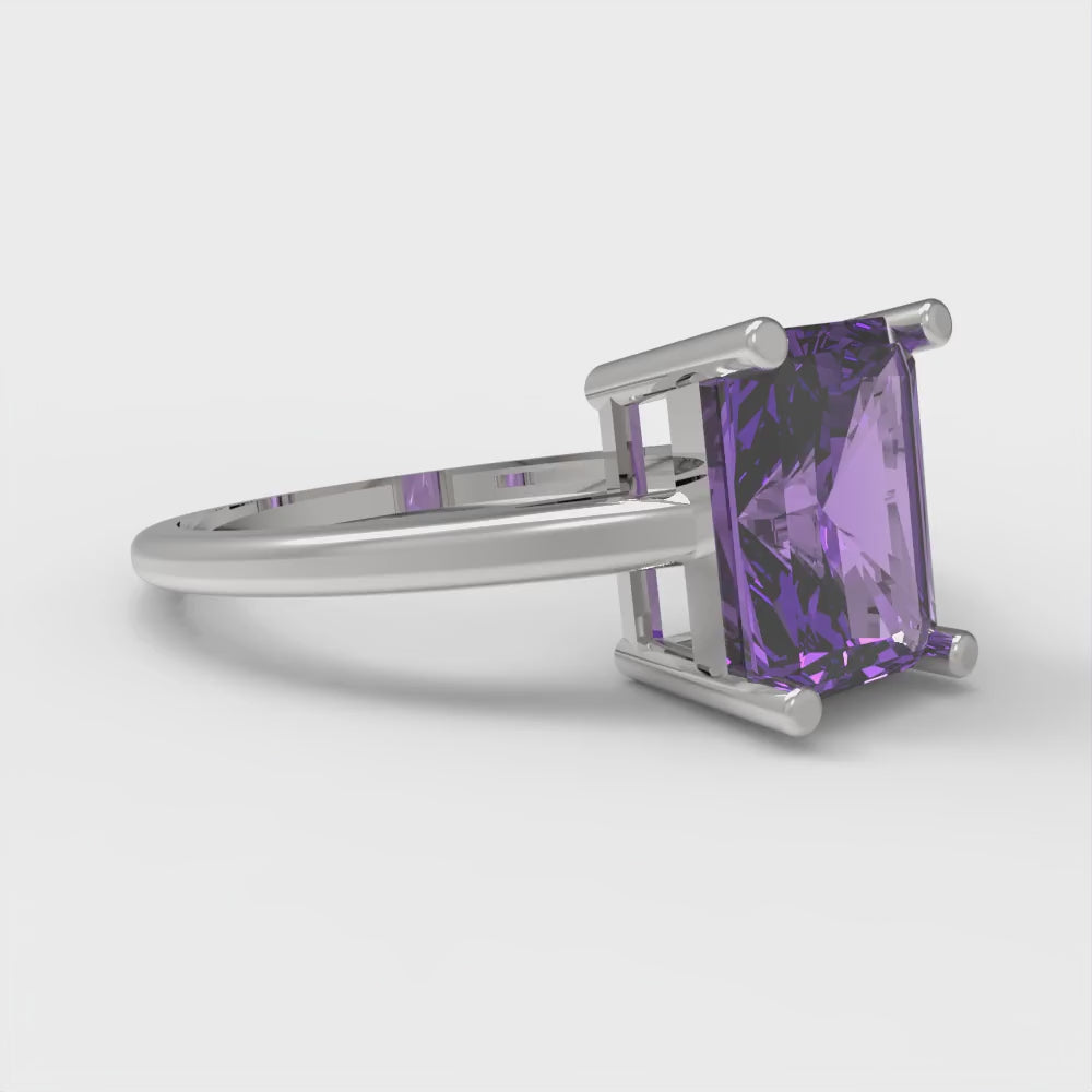 2 cttw Simulated Alexandrite Solitaire Engagement Ring - Solid Gold (Emerald Cut,8x6mm)