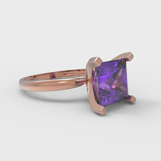 3 cttw Simulated Alexandrite Solitaire Engagement Ring - Solid Gold (Princess Cut,8.0mm)