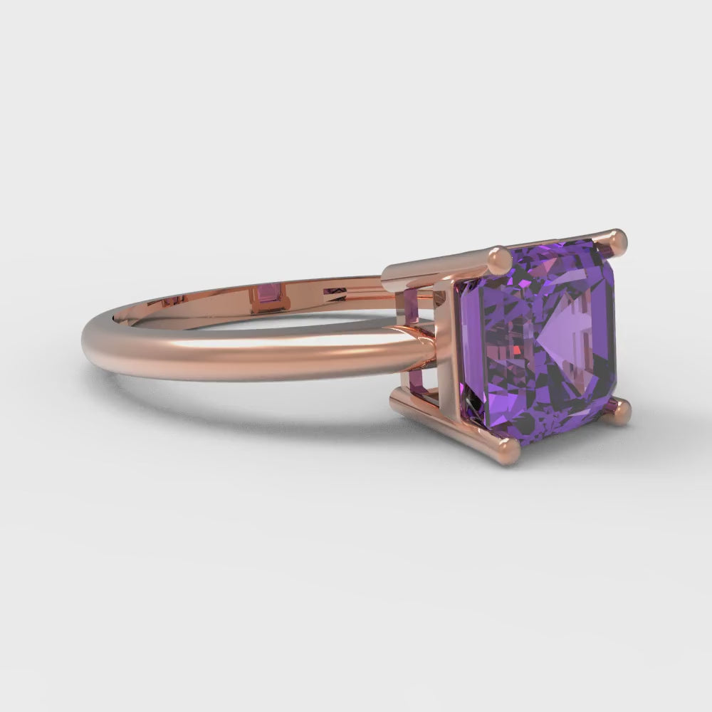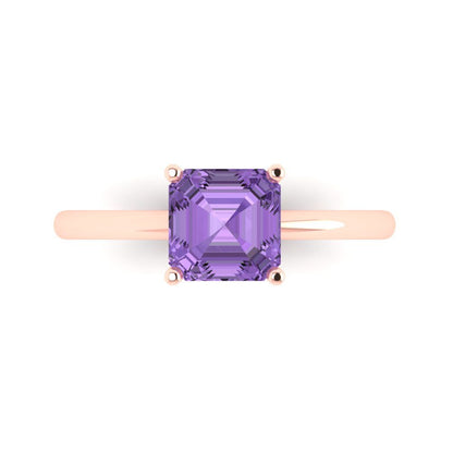 1.5 cttw Simulated Alexandrite Solitaire Engagement Ring - Solid Gold (Asscher Cut,6.5mm)