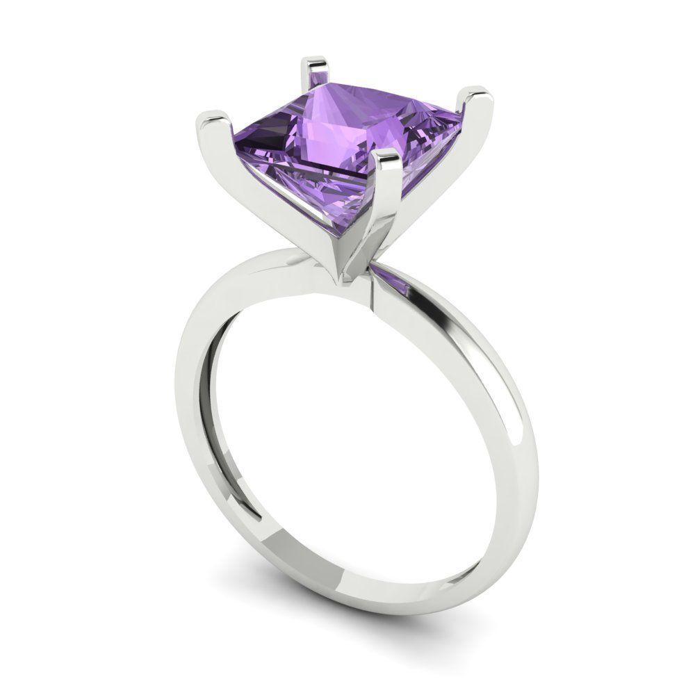 3 cttw Simulated Alexandrite Solitaire Engagement Ring - Solid Gold (Princess Cut,8.0mm)