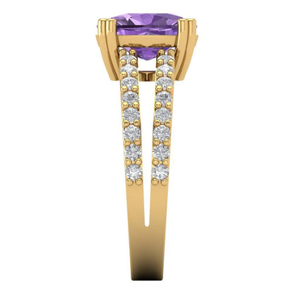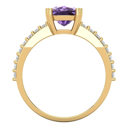 3.48 cttw Simulated Alexandrite Solitaire with Zirconia Simulated Diamond Accents Engagement Ring - Solid Gold (Long Cushion Cut,9x7mm)