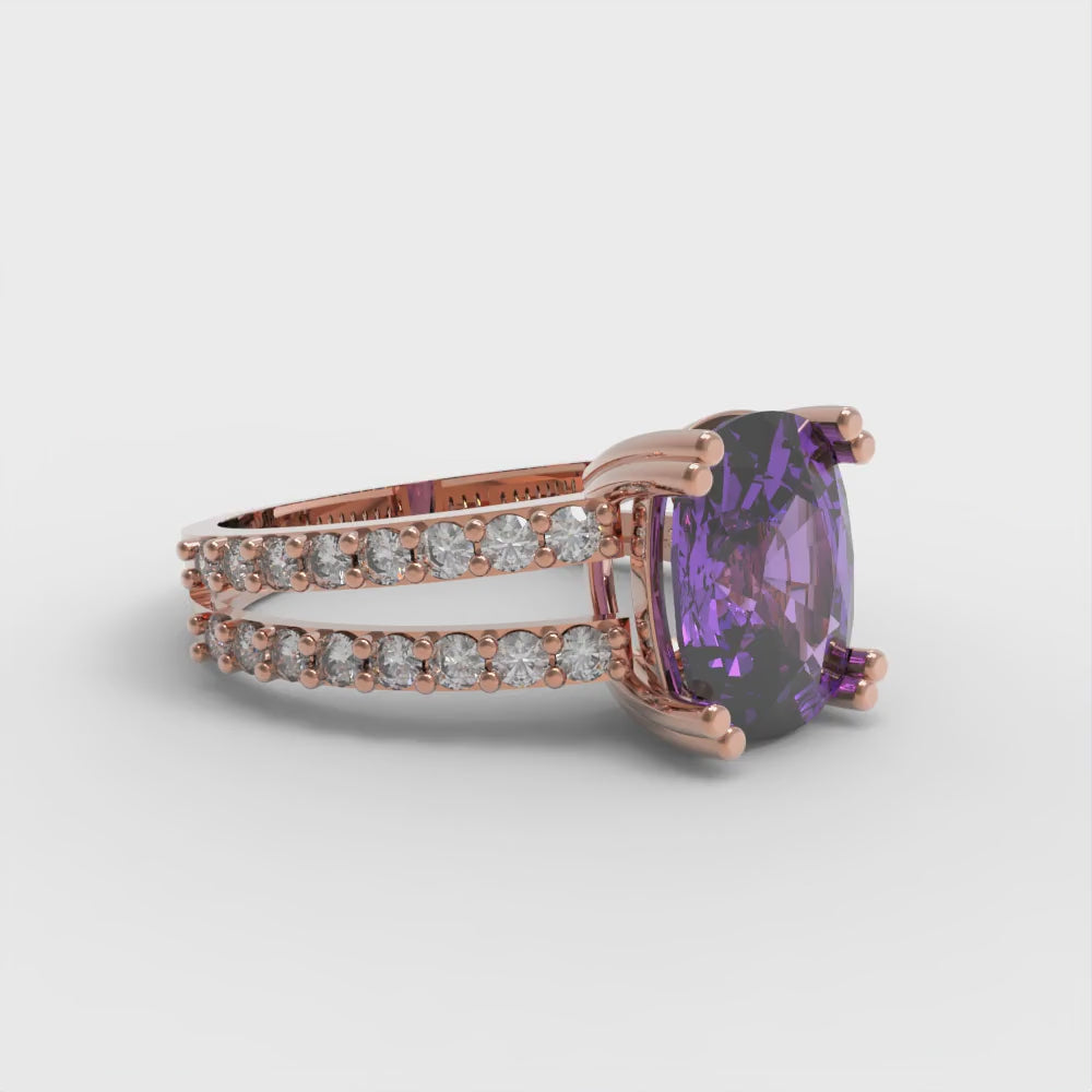 3.48 cttw Simulated Alexandrite Solitaire with Zirconia Simulated Diamond Accents Engagement Ring - Solid Gold (Long Cushion Cut,9x7mm)