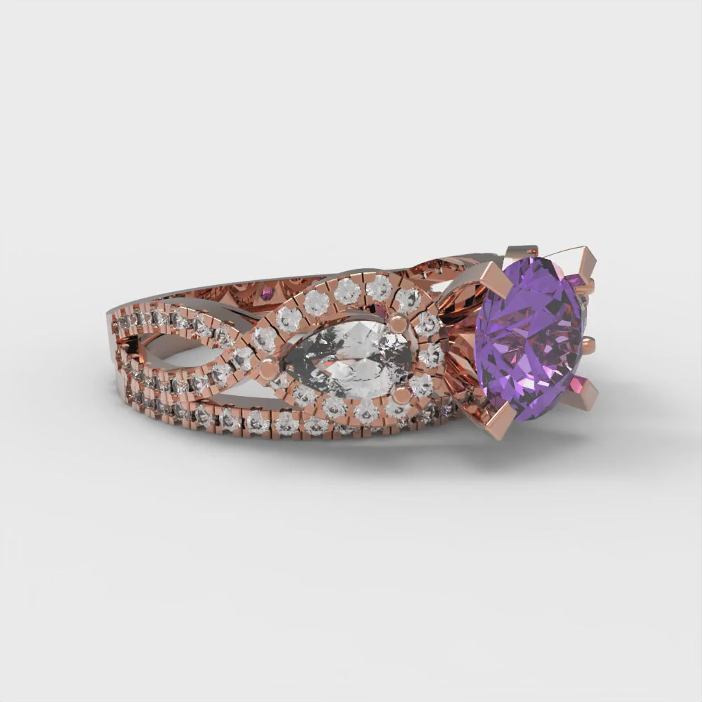 1.925 cttw Round Cut Simulated Alexandrite Bridal Set - Solid Rose Gold Engagement Ring & Wedding Band