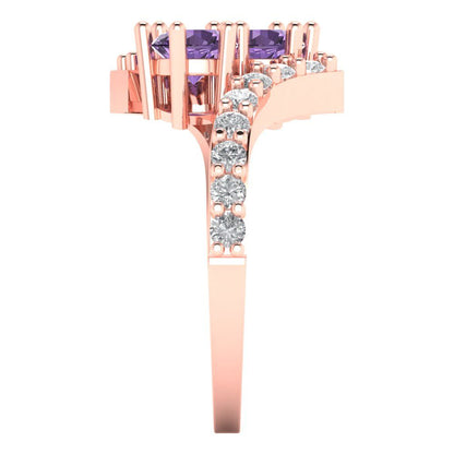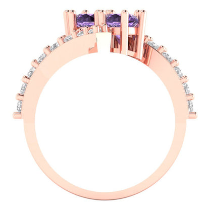 1.48 cttw Simulated Alexandrite Solitaire with Zirconia Simulated Diamond Accents Engagement Ring - Solid Gold (Round Cut,5mm)