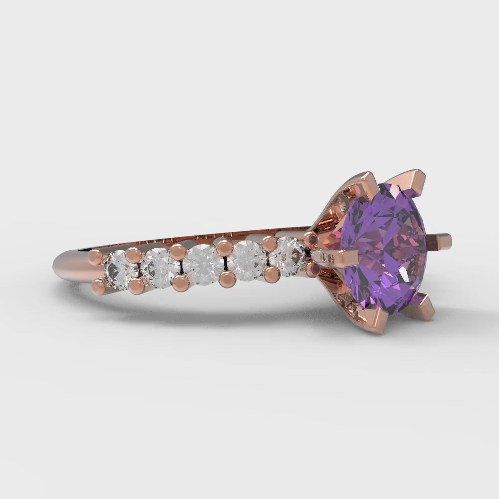 1.05 cttw Simulated Alexandrite Solitaire with Zirconia Simulated Diamond Accents Engagement Ring - Solid Gold (Round Cut,6.0mm)