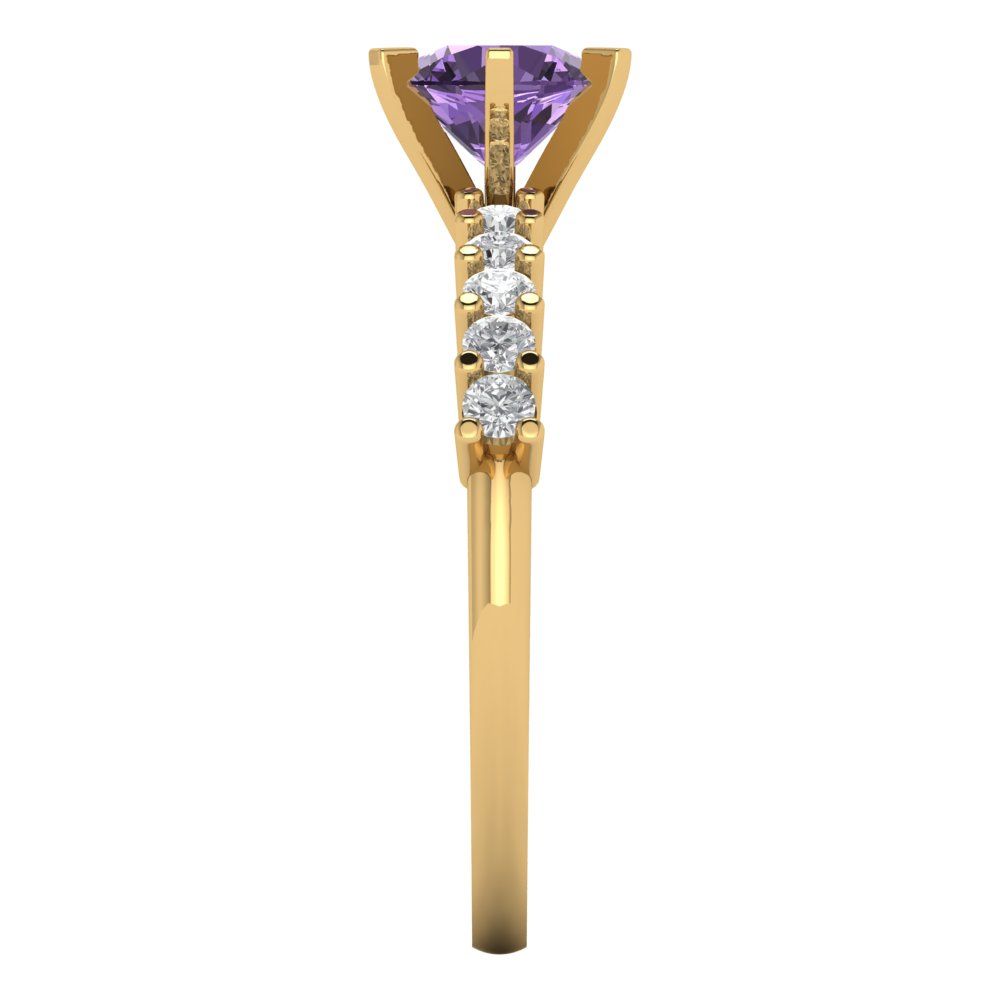 1.05 cttw Simulated Alexandrite Solitaire with Zirconia Simulated Diamond Accents Engagement Ring - Solid Gold (Round Cut,6.0mm)