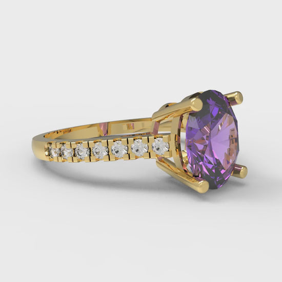 2.21 cttw Simulated Alexandrite Solitaire with Zirconia Simulated Diamond Accents Engagement Ring - Solid Gold (Oval Cut,9X7mm)