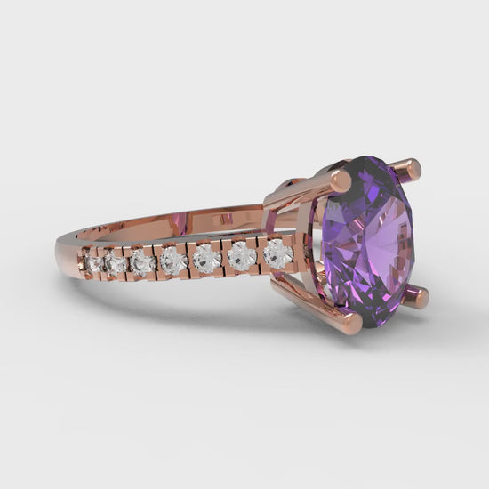 2.21 cttw Simulated Alexandrite Solitaire with Zirconia Simulated Diamond Accents Engagement Ring - Solid Gold (Oval Cut,9X7mm)