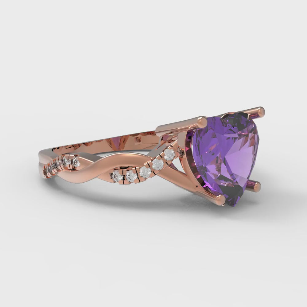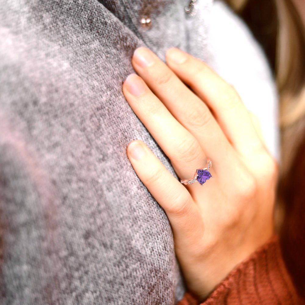 2.1 cttw Simulated Alexandrite Solitaire with Zirconia Simulated Diamond Accents Engagement Ring - Solid Gold (Heart Cut,8mm)