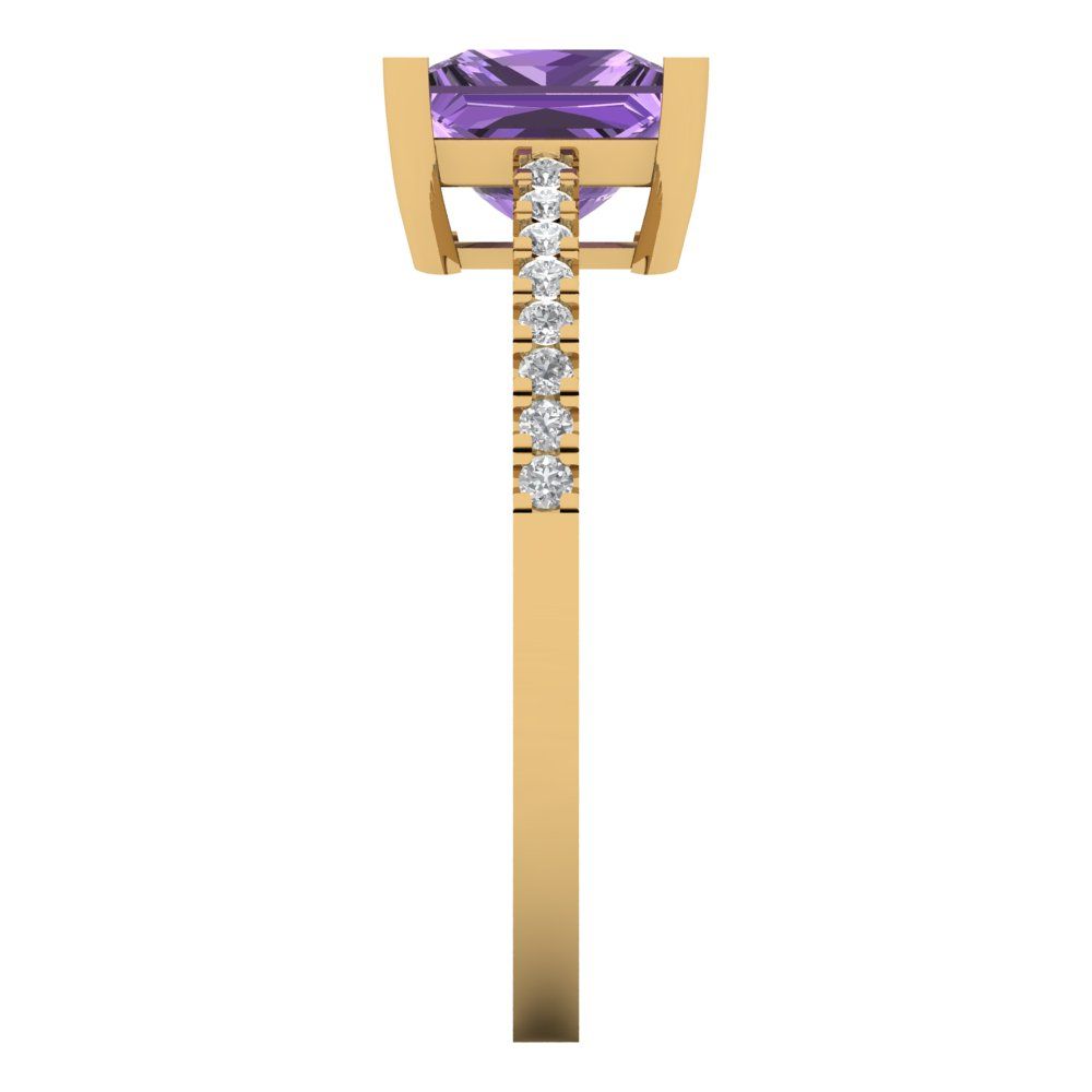 1.62 cttw Simulated Alexandrite Solitaire with Zirconia Simulated Diamond Accents Engagement Ring - Solid Gold (Princess Cut,6.5mm)