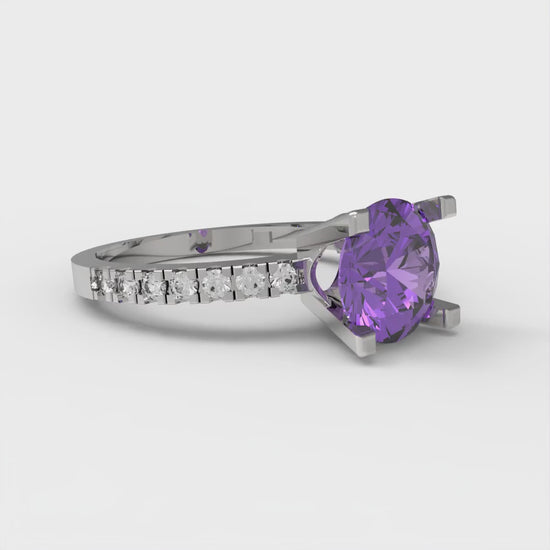 1.71 cttw Simulated Alexandrite Solitaire with Zirconia Simulated Diamond Accents Engagement Ring - Solid Gold (Round Cut,7.5mm)