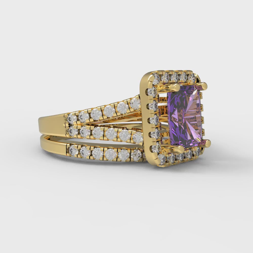 1.72 cttw Emerald Cut Simulated Alexandrite Bridal Set - Solid Yellow Gold Engagement Ring & Wedding Band