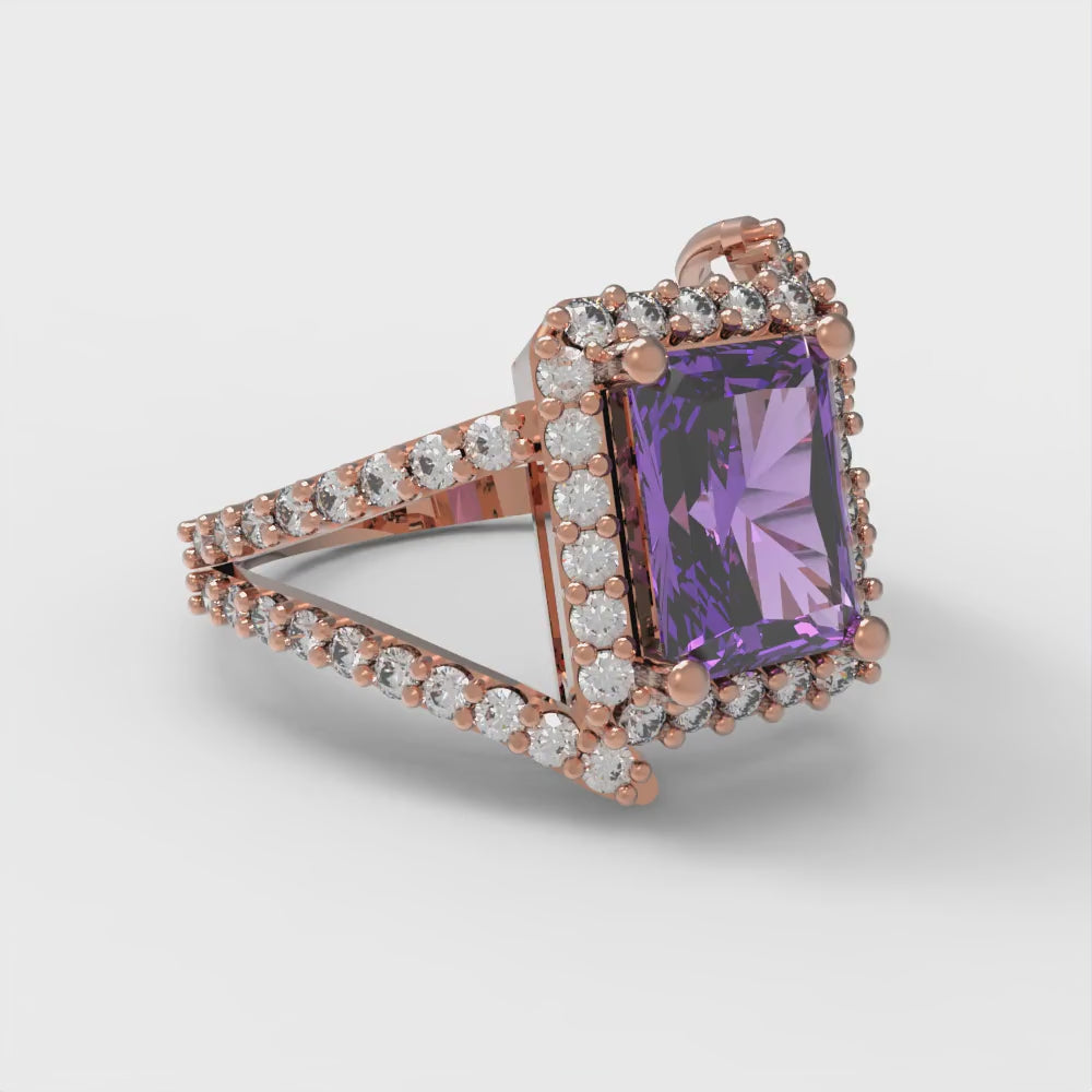 1.935 cttw Simulated Alexandrite Solitaire with Zirconia Simulated Diamond Accents Engagement Ring - Solid Gold (Emerald Cut,7.5x5.5mm)