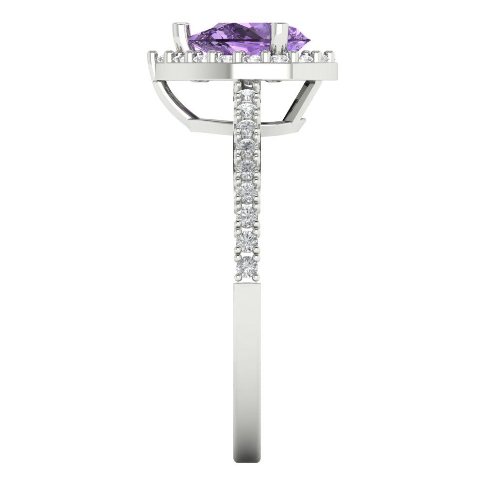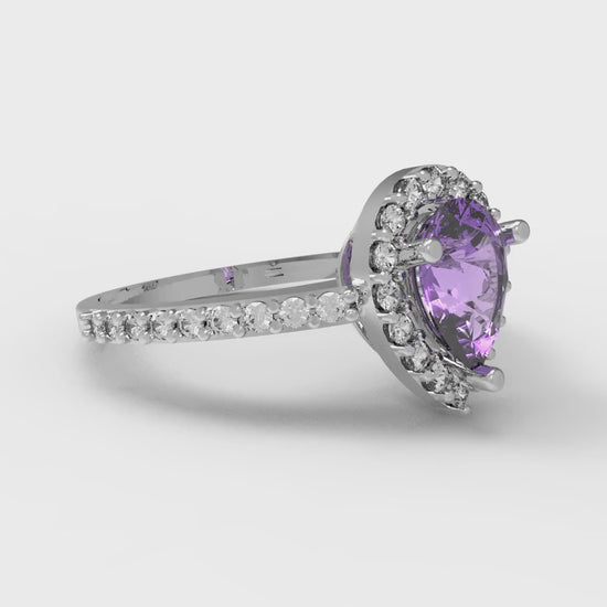 0.755 cttw Simulated Alexandrite Solitaire with Zirconia Simulated Diamond Accents Engagement Ring - Solid Gold (Pear Cut,7x5mm )