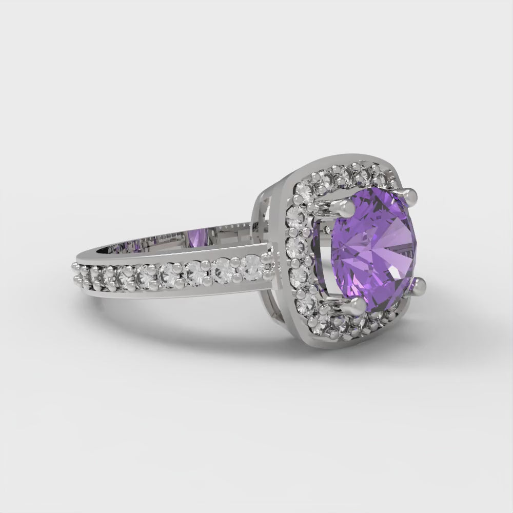 1.335 cttw Simulated Alexandrite Solitaire with Zirconia Simulated Diamond Accents Engagement Ring - Solid Gold (Round Cut,6.5mm)