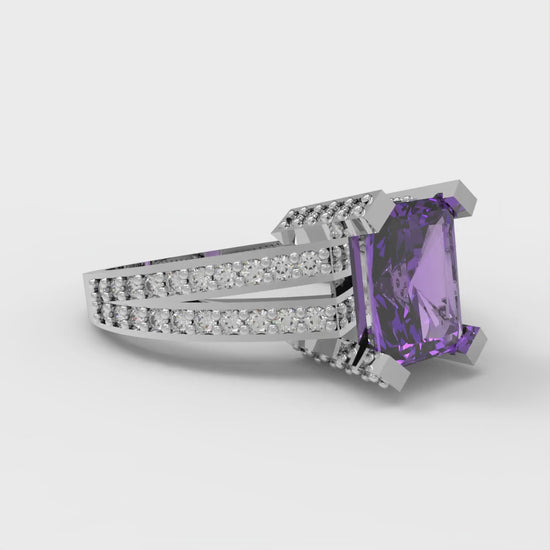 2.35 cttw Simulated Alexandrite Solitaire with Zirconia Simulated Diamond Accents Engagement Ring - Solid Gold (Emerald Cut,8x6mm)
