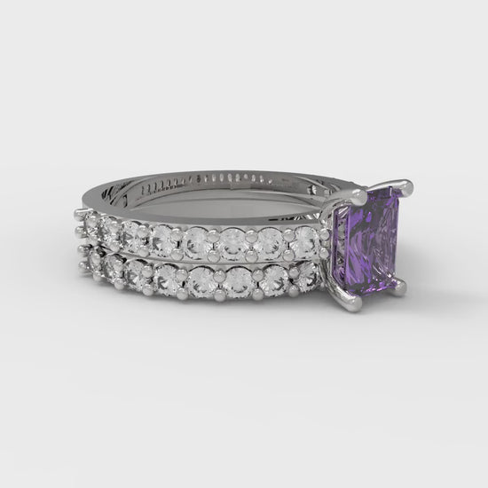 1.325 cttw Emerald Cut Simulated Alexandrite Bridal Set - Solid White Gold Engagement Ring & Wedding Band
