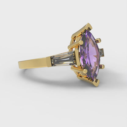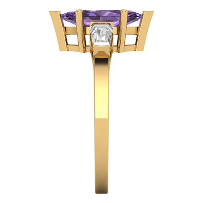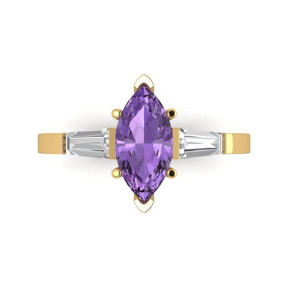 2 cttw Simulated Alexandrite Three-Stone Engagement Ring - Solid Gold (Marquise Cut,11x5.5mm)
