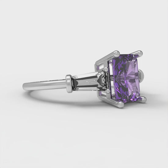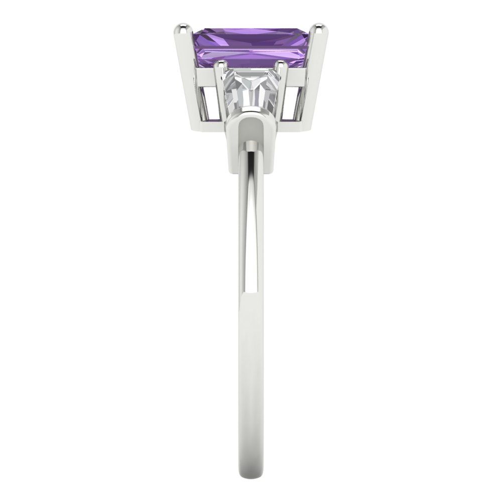 1.5 cttw Simulated Alexandrite Three-Stone Engagement Ring - Solid Gold (Emerald Cut,7.0x5.0mm)
