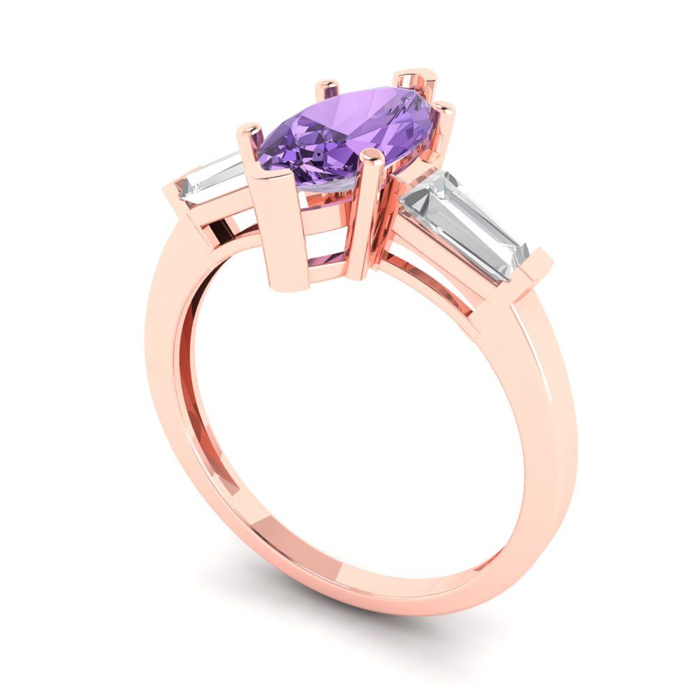 2 cttw Simulated Alexandrite Three-Stone Engagement Ring - Solid Gold (Marquise Cut,11x5.5mm)