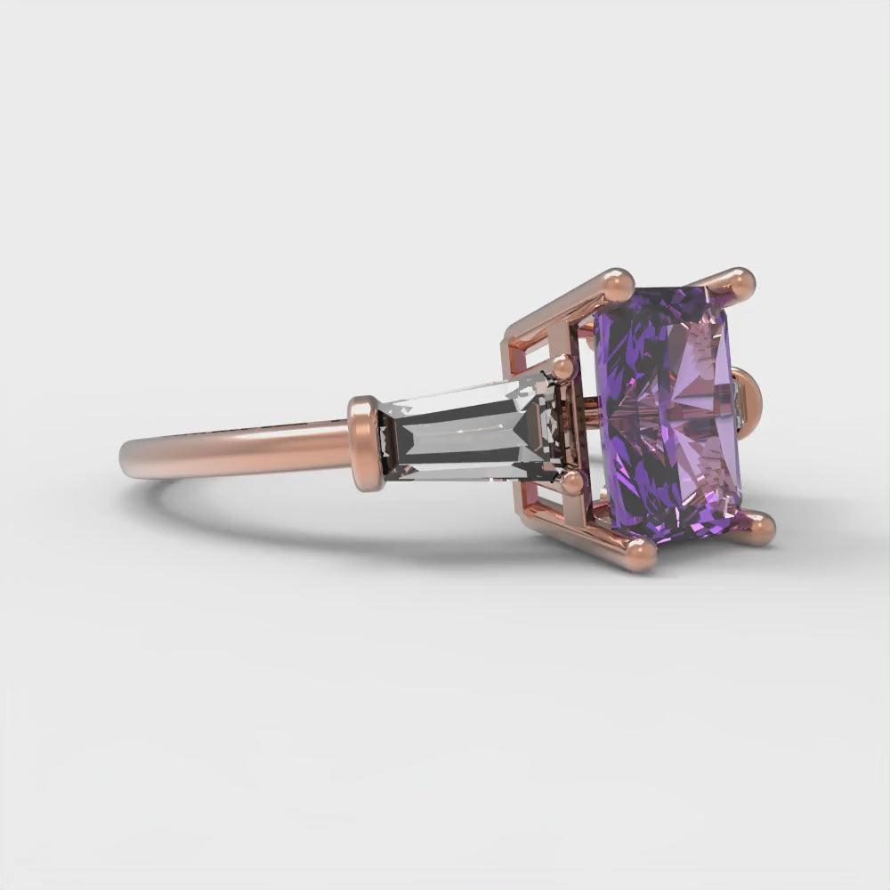 1.5 cttw Simulated Alexandrite Three-Stone Engagement Ring - Solid Gold (Emerald Cut,7.0x5.0mm)