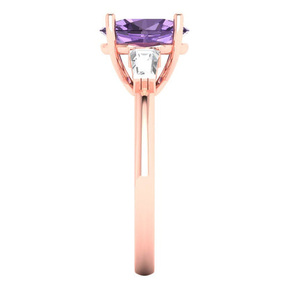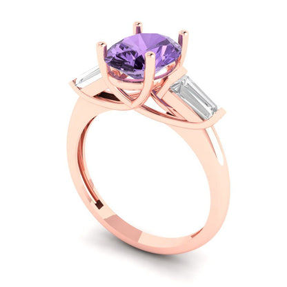 2.5 cttw Simulated Alexandrite Three-Stone Engagement Ring - Solid Gold (Oval Cut,9x7mm)