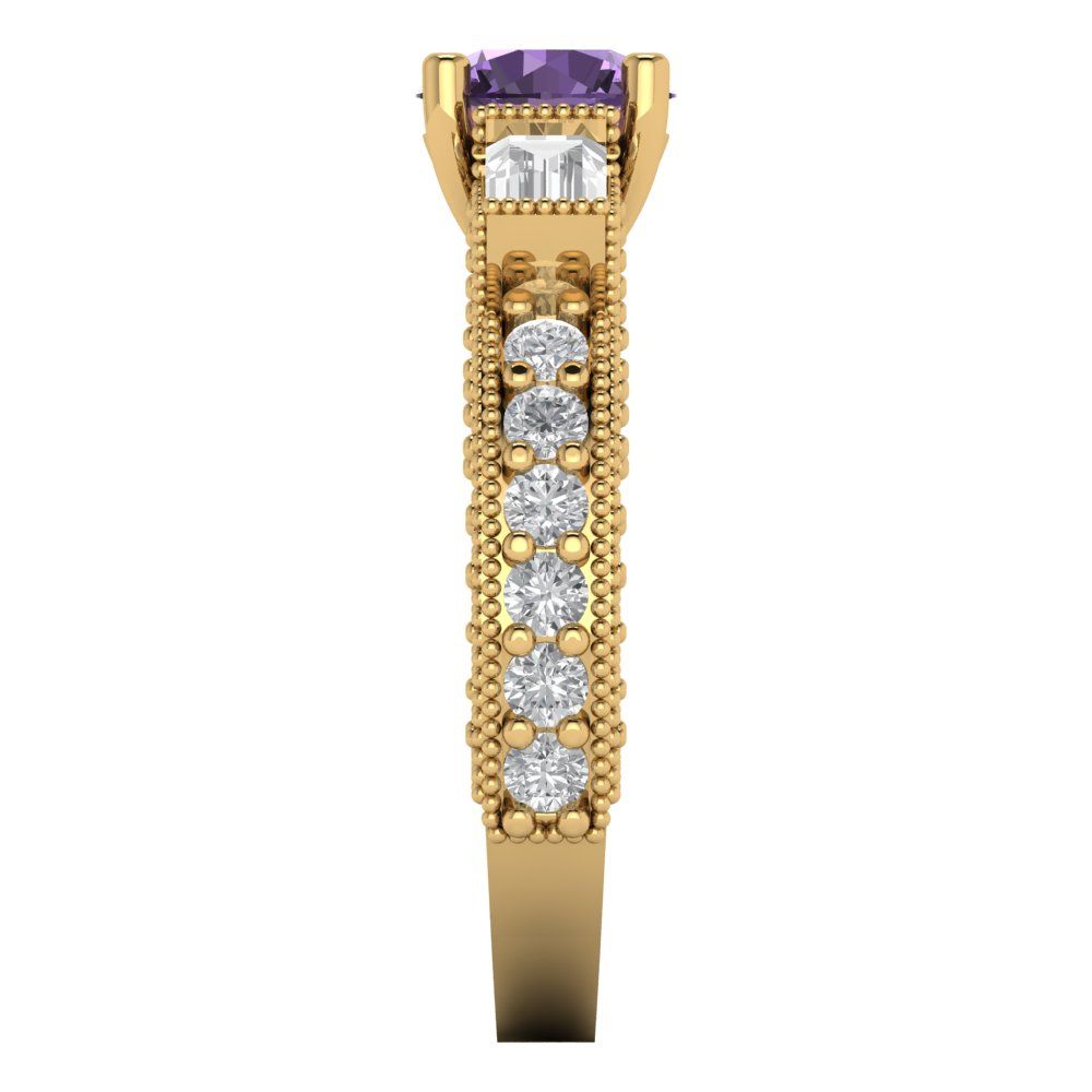 2.33 cttw Simulated Alexandrite Three-Stone Engagement Ring - Solid Gold (Round Cut,6.5mm)