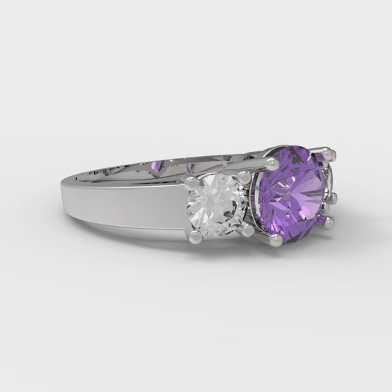 1.5 cttw Simulated Alexandrite Three-Stone Engagement Ring - Solid Gold (Round Cut,6.5mm)