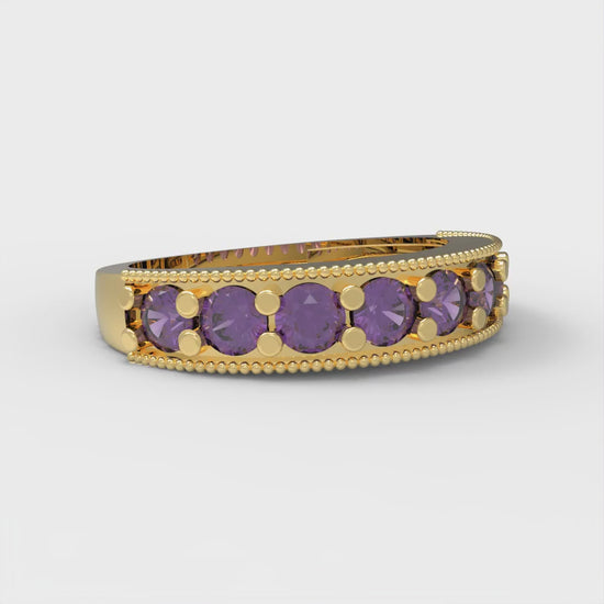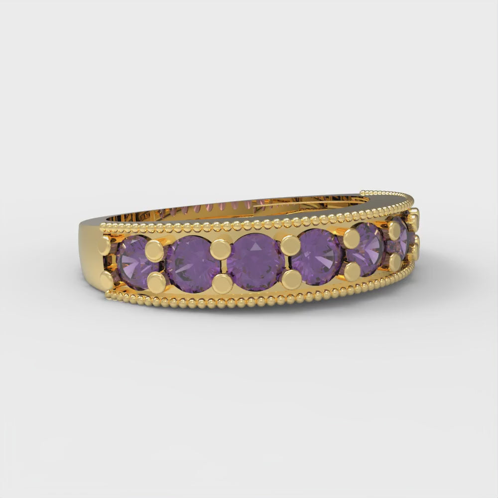 0.81 cttw Natural Amethyst Round Cut Yellow Gold Eternity Wedding Band