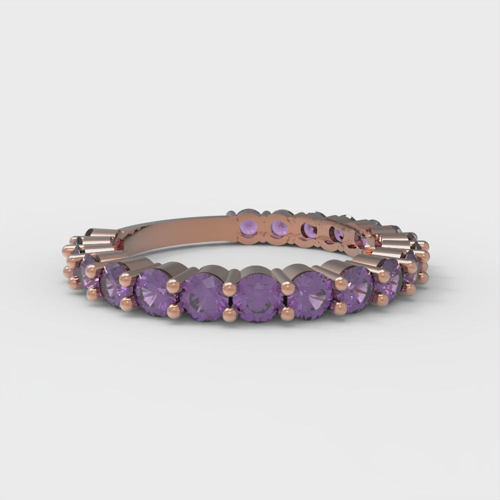 1.2 cttw Natural Amethyst Round Cut Rose Gold Eternity Wedding Band
