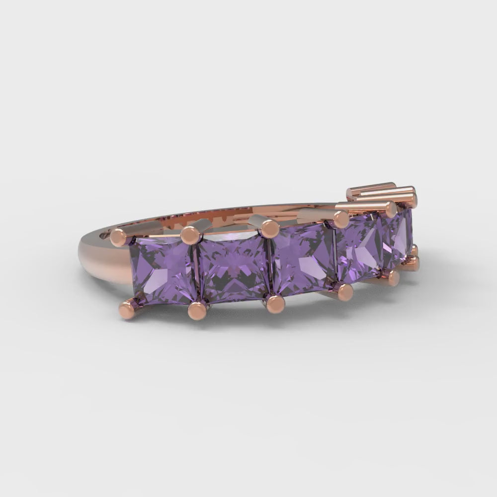 1.75 cttw Natural Amethyst Princess Cut Rose Gold Eternity Wedding Band