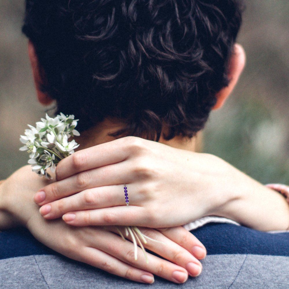 0.35 cttw Natural Amethyst Round Cut White Gold Eternity Wedding Band