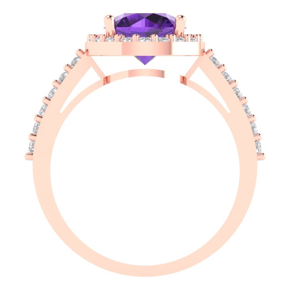 1.86 cttw Natural Amethyst Hidden Halo Engagement Ring - Solid Gold (Round Cut,7.5mm)