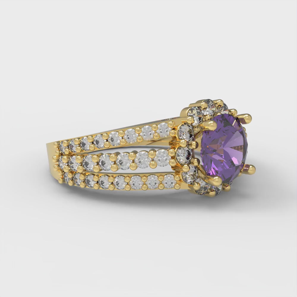 1.83 cttw Natural Amethyst Hidden Halo Engagement Ring - Solid Gold (Round Cut,6.5mm)