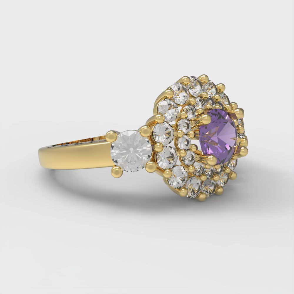 1.4 cttw Natural Amethyst Hidden Halo Engagement Ring - Solid Gold (Round Cut,5.0mm)
