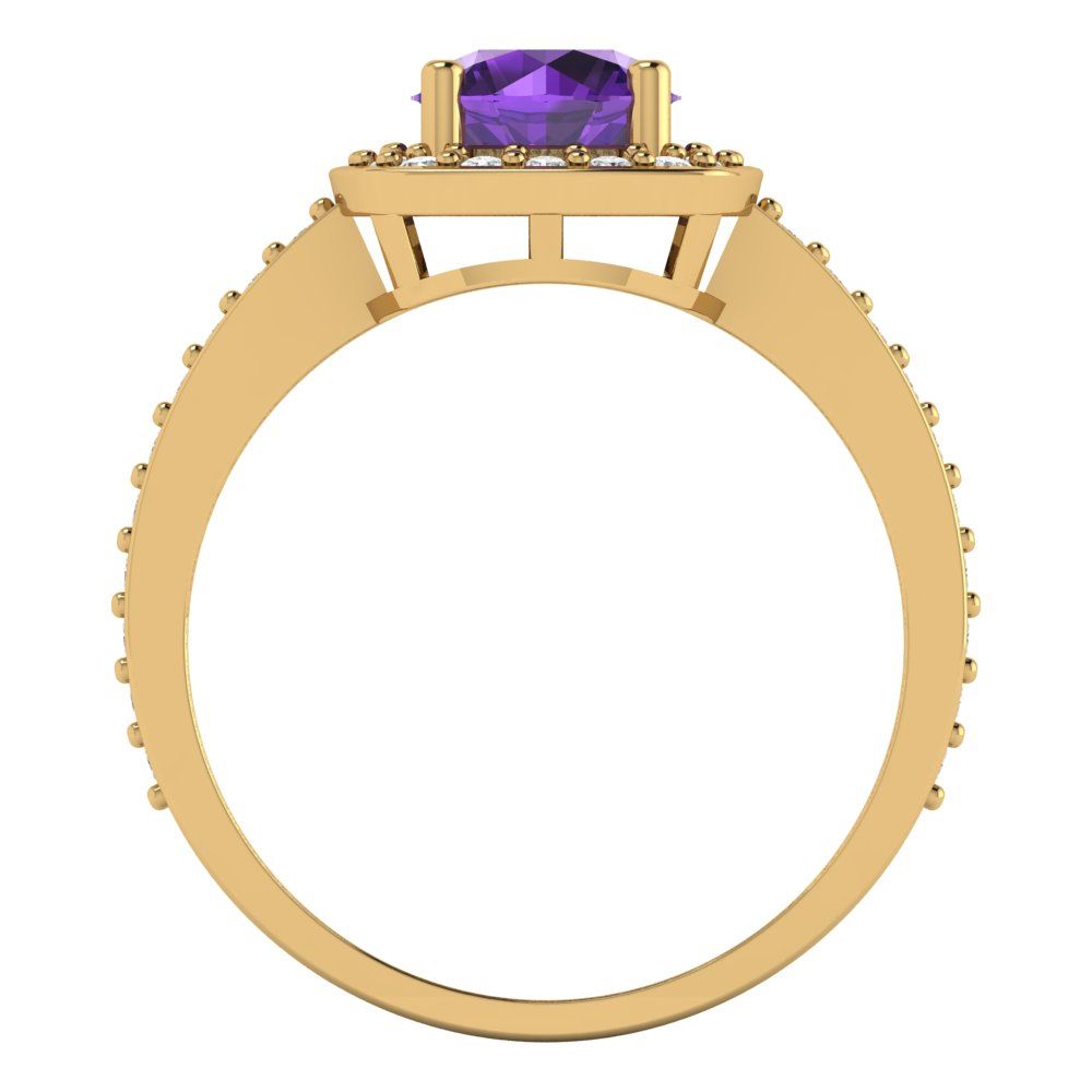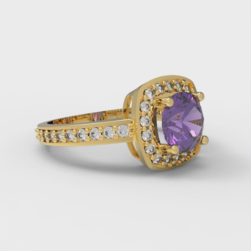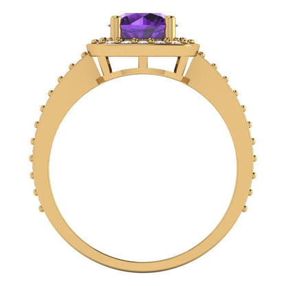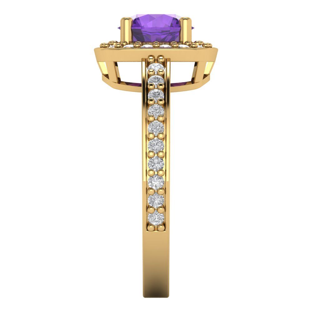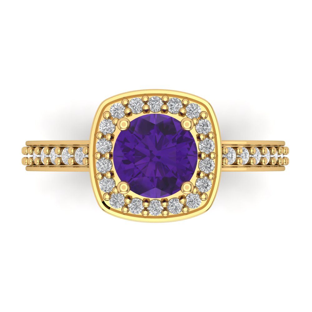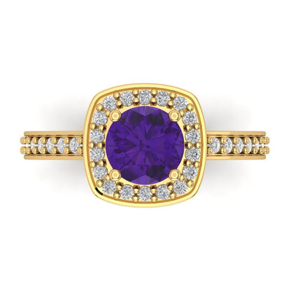 1.335 cttw Natural Amethyst Hidden Halo Engagement Ring - Solid Gold (Round Cut,6.5mm)