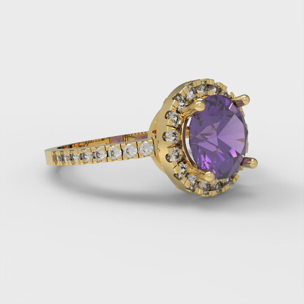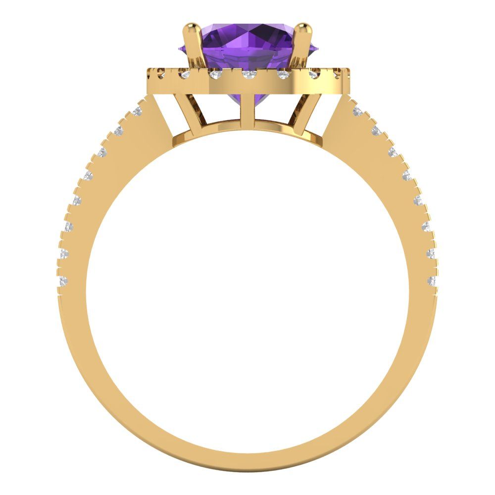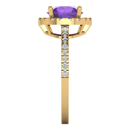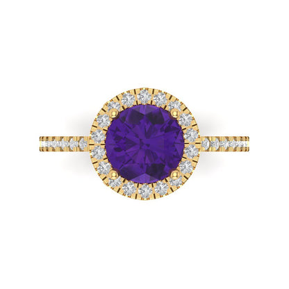 1.8 cttw Natural Amethyst Hidden Halo Engagement Ring - Solid Gold (Round Cut,7.5mm)