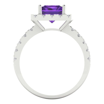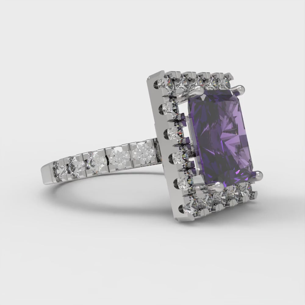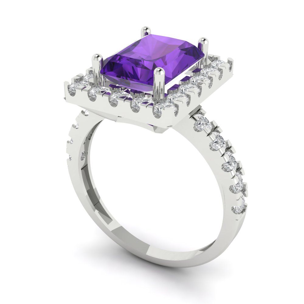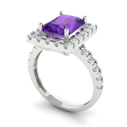3.84 cttw Natural Amethyst Hidden Halo Engagement Ring - Solid Gold (Emerald Cut,9x7mm)