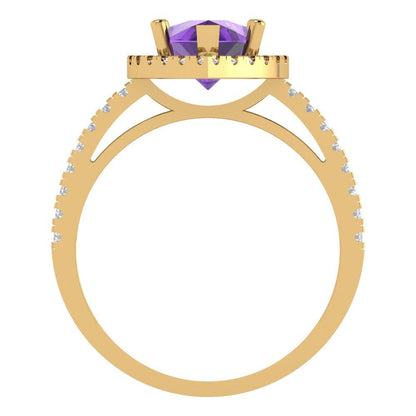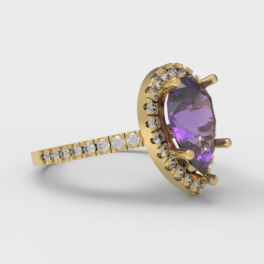 2.38 cttw Natural Amethyst Hidden Halo Engagement Ring - Solid Gold (Pear Cut,10x7mm )