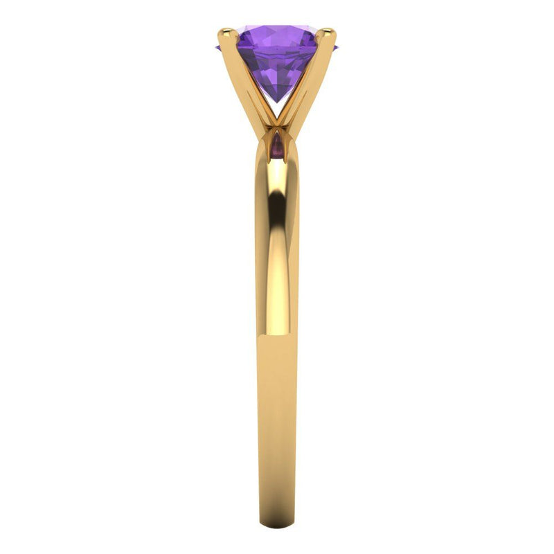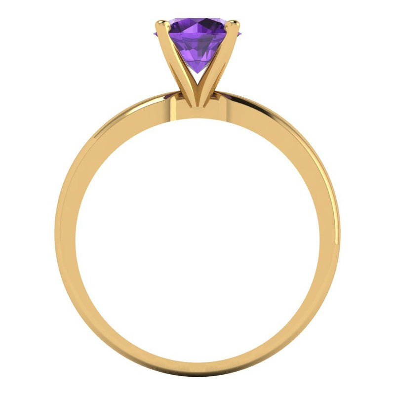 1 cttw Natural Amethyst Solitaire Engagement Ring - Solid Gold (Round Cut,6.5mm)