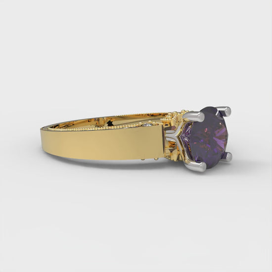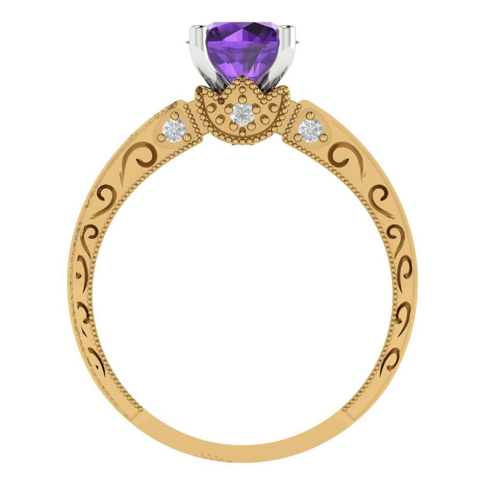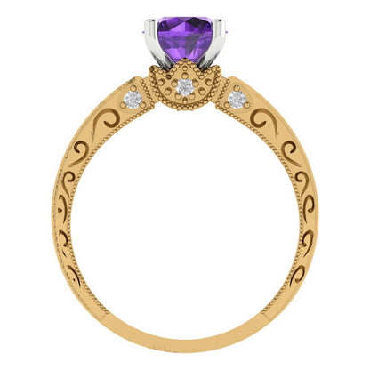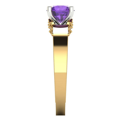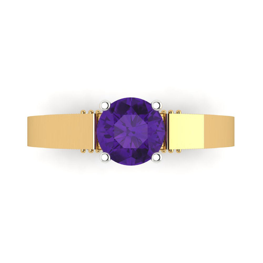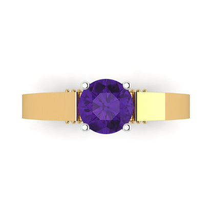 1.06 cttw Natural Amethyst Solitaire Engagement Ring - Solid Gold (Round Cut,6.5mm)
