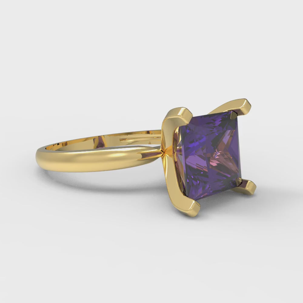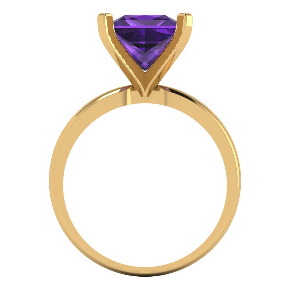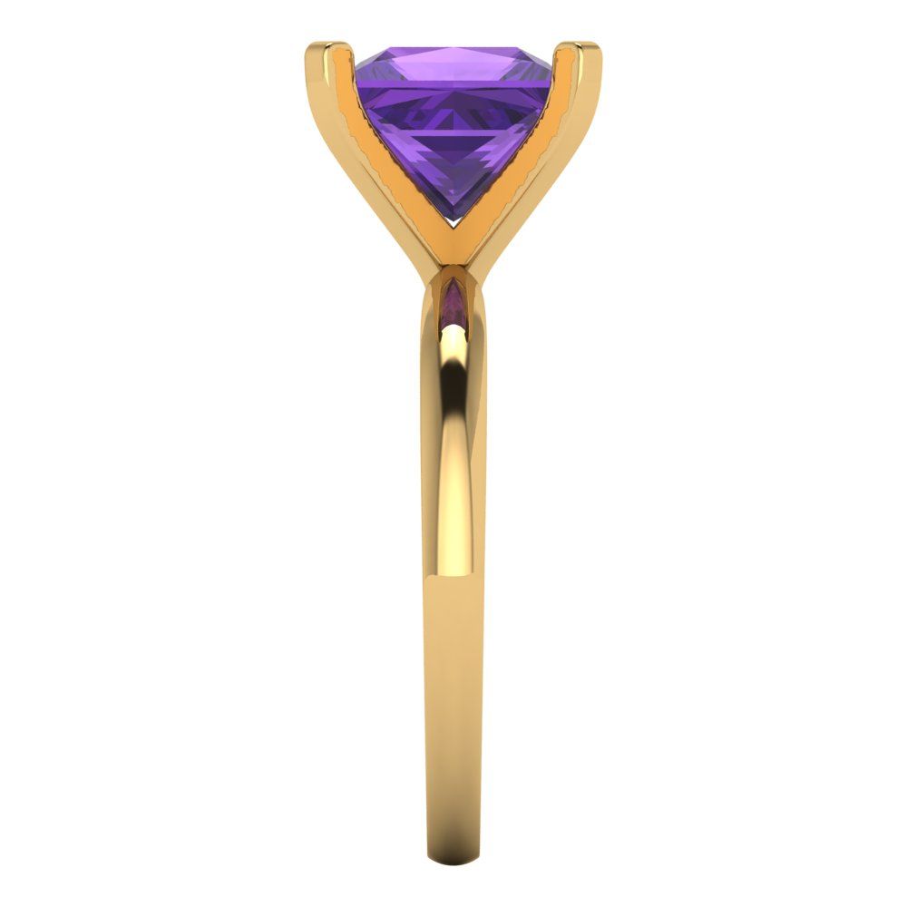 3 cttw Natural Amethyst Solitaire Engagement Ring - Solid Gold (Princess Cut,8.0mm)