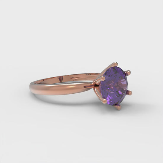 1.5 cttw Natural Amethyst Solitaire Engagement Ring - Solid Gold (Round Cut,7.5mm)