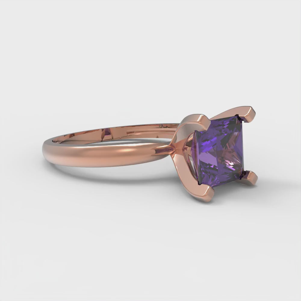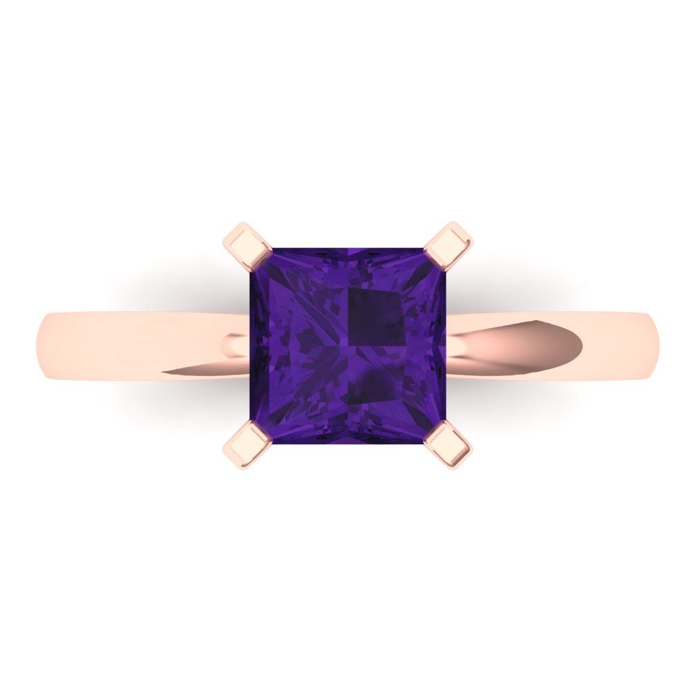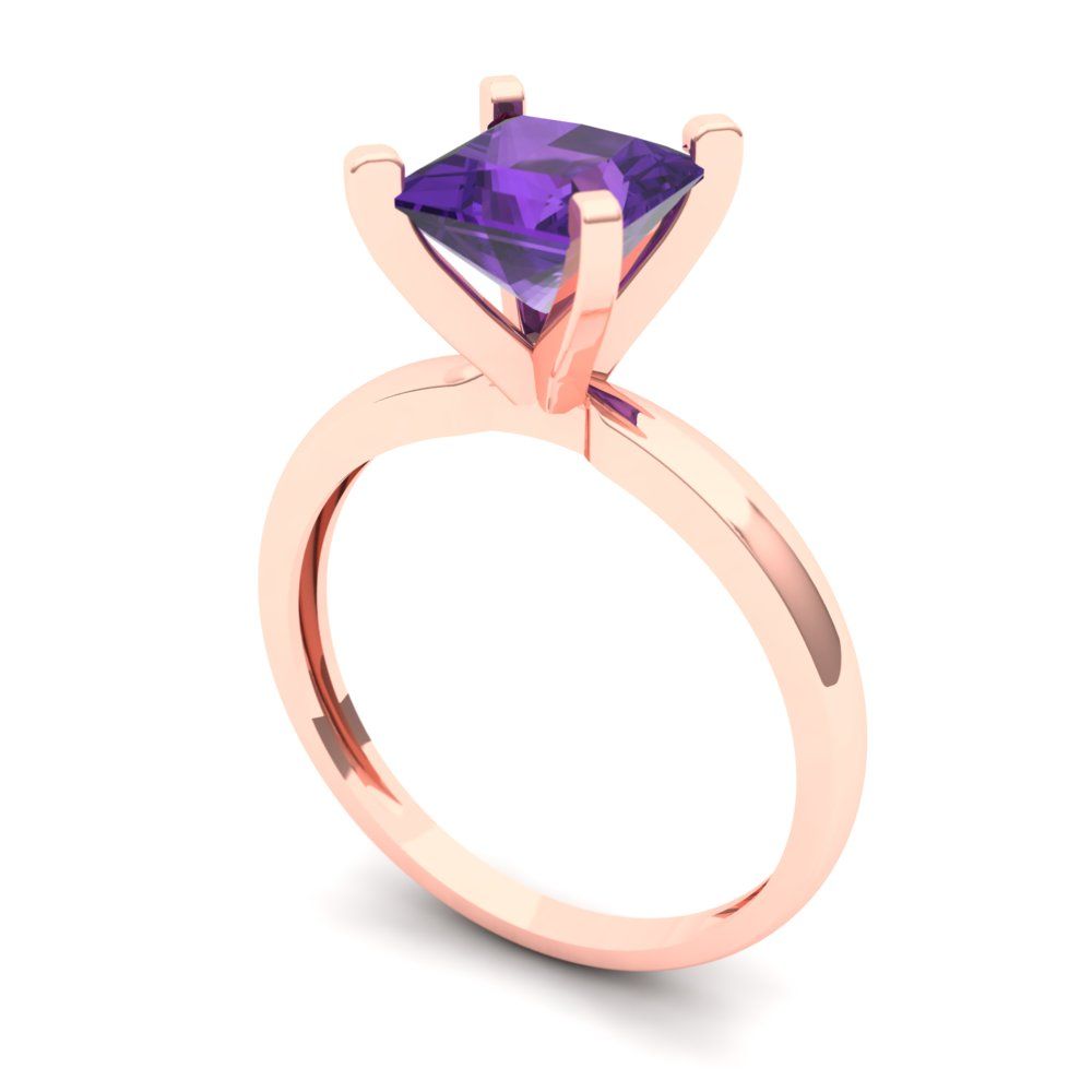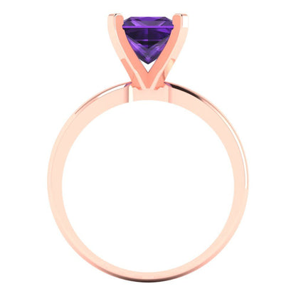 1.5 cttw Natural Amethyst Solitaire Engagement Ring - Solid Gold (Princess Cut,6.5mm)